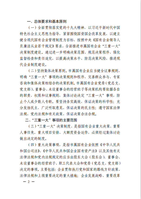 關(guān)于進(jìn)一步規(guī)范市屬國有企業(yè)貫徹落實“三重一大”決策制度實施意見(國資黨委[2020]21號)