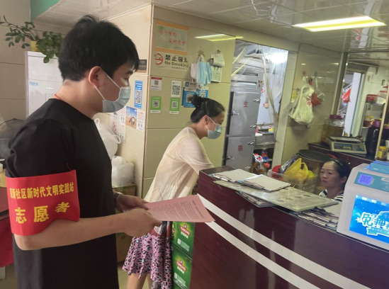 八月末,天氣炎熱,市政集團的志愿者們身著紅馬甲,不畏臟、不怕累,各司其職,分時段分批次在蓮新社區(qū)范圍內(nèi)開展創(chuàng)城活動,其中清潔崗的志愿者們帶著夾子、掃帚、垃圾袋等清掃工具,對街道路面的紙屑、塑料袋、煙頭等生活垃圾進行清掃,將亂停亂放的自行車整齊的排列在停車位上,使得街道整潔一新。宣傳崗的志愿者們走進商鋪,發(fā)放文明宣傳標語,動員商鋪店主一起,注意門前三包,在平時營業(yè)工作中,遇到不文明行為時,進行及時規(guī)勸,讓市民自覺遵守,規(guī)范自身行為,積極踐行“共創(chuàng)共享”的創(chuàng)城理念,共同為創(chuàng)建文明城市出一份力。交通崗的志愿者們通過積極引導(dǎo)道路交通,向過往行人科普創(chuàng)城溫馨小知識,加強城市文明建設(shè)。