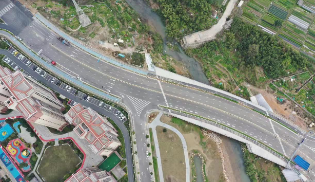 羅橋節(jié)點改造提升工程2019年11月開工建設(shè),2021年8月建成通車。該項目沿北環(huán)西路、龍興路設(shè)置南北分離式雙向四車道高架,南側(cè)接龍興路,北側(cè)接現(xiàn)狀北環(huán)西路,高架靠東側(cè)布置(緊貼烈士陵園),橋梁總長約1140米,凈寬約7.7米;在雙洋路、龍川北路、北環(huán)西路設(shè)置人行天橋,與山體步道銜接,以完善慢行系統(tǒng);在烈士陵園山體下采用明挖回填方式設(shè)置框涵,長度約225米,凈寬10.75米。工程投資1.4億元。